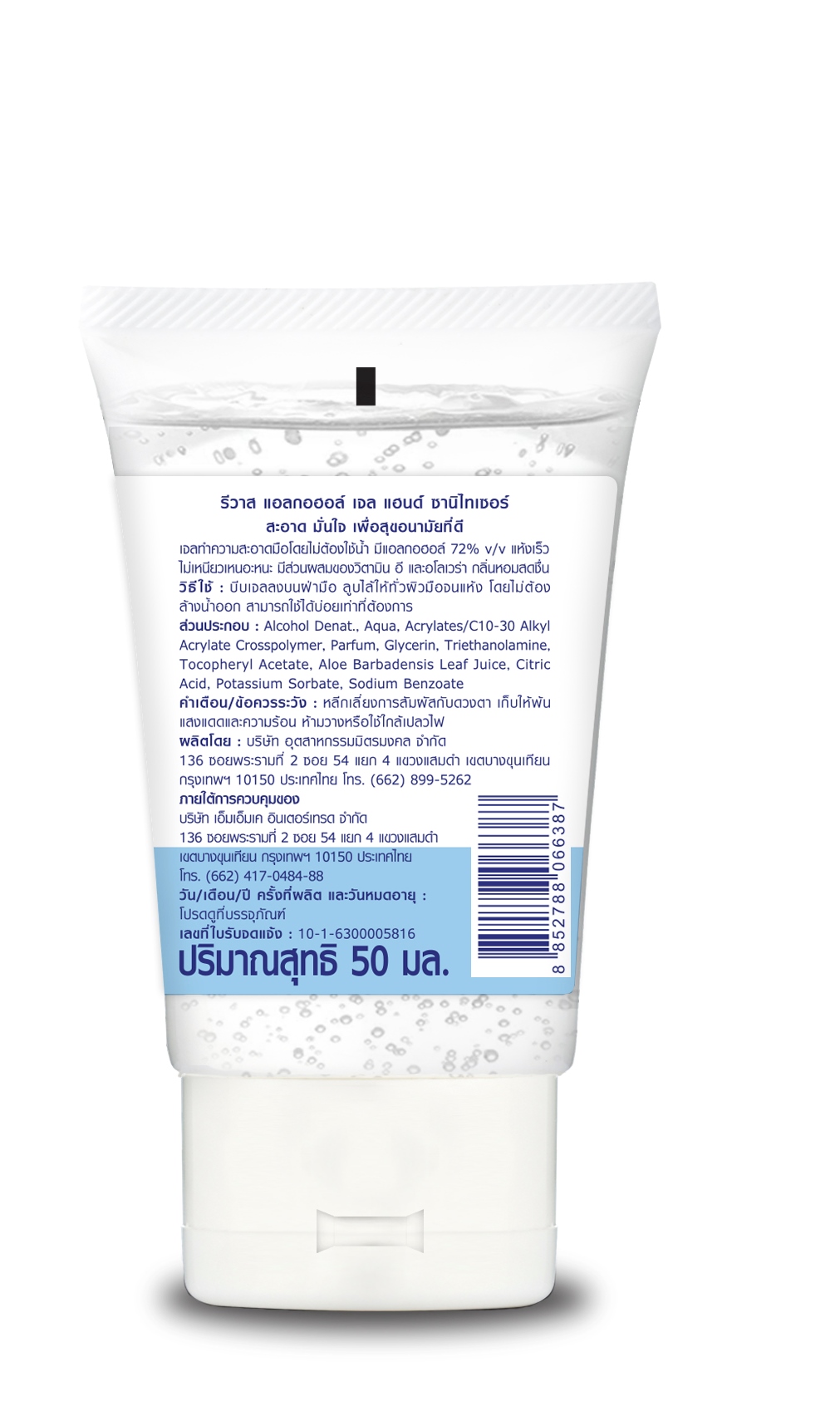 * ปริมาณแอลกอฮอล์ 72% มั่นใจในความสะอาด
