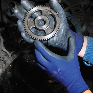 วัสดุ – ผลิตจากเส้นใยไนล่อน ทอแบบไร้รอยต่อ เคลือบฝ่ามีอด้วยยางไนไตรล์ (กันน้ำมัน)